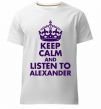 Мужская премиум-футболка собственного производства. Выполнена из качественной ткани (95% хлопок, 5% эластан) — плотная, мягкая и приятная к телу. Принт Keep calm and listen to Alexander можно нанести на грудь, спину или рукав.