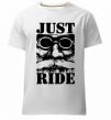 Мужская премиум-футболка собственного производства. Выполнена из качественной ткани (95% хлопок, 5% эластан) — плотная, мягкая и приятная к телу. Принт Just ride можно нанести на грудь, спину или рукав.