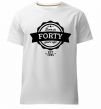 Мужская премиум-футболка собственного производства. Выполнена из качественной ткани (95% хлопок, 5% эластан) — плотная, мягкая и приятная к телу. Принт Born in forty years ago можно нанести на грудь, спину или рукав.