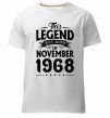 Мужская премиум-футболка собственного производства. Выполнена из качественной ткани (95% хлопок, 5% эластан) — плотная, мягкая и приятная к телу. Принт This Legend was born in November 1968 можно нанести на грудь, спину или рукав.