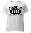 Мужская премиум-футболка собственного производства. Выполнена из качественной ткани (95% хлопок, 5% эластан) — плотная, мягкая и приятная к телу. Принт Made in 1958 All Original Parts можно нанести на грудь, спину или рукав.