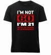 Мужская премиум-футболка собственного производства. Выполнена из качественной ткани (95% хлопок, 5% эластан) — плотная, мягкая и приятная к телу. Принт I'm not 60 i'm 21 with 39 years of experience можно нанести на грудь, спину или рукав.