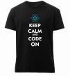 Мужская премиум-футболка собственного производства. Выполнена из качественной ткани (95% хлопок, 5% эластан) — плотная, мягкая и приятная к телу. Принт Keep calm and code on можно нанести на грудь, спину или рукав.