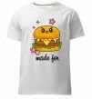 Мужская премиум-футболка собственного производства. Выполнена из качественной ткани (95% хлопок, 5% эластан) — плотная, мягкая и приятная к телу. Принт Бургер Made for можно нанести на грудь, спину или рукав.