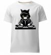 Мужская премиум-футболка собственного производства. Выполнена из качественной ткани (95% хлопок, 5% эластан) — плотная, мягкая и приятная к телу. Принт DJ CAT можно нанести на грудь, спину или рукав.
