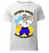 Предлагаем еще один вариант принта с надписью "Дякую, боже, що я не москаль!" и изображением колоритного украинского казака в полный рост на фоне национального флага. Футболка с таким изображением - то, что нужно любому настоящему патриоту!