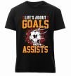 Мужская премиум-футболка собственного производства. Выполнена из качественной ткани (95% хлопок, 5% эластан) — плотная, мягкая и приятная к телу. Принт Goals and assists можно нанести на грудь, спину или рукав.