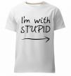 Мужская премиум-футболка собственного производства. Выполнена из качественной ткани (95% хлопок, 5% эластан) — плотная, мягкая и приятная к телу. Принт I'M WITH STUPID можно нанести на грудь, спину или рукав.
