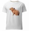 Мужская премиум-футболка собственного производства. Выполнена из качественной ткани (95% хлопок, 5% эластан) — плотная, мягкая и приятная к телу. Принт Капібара з пташкою можно нанести на грудь, спину или рукав.