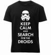 Мужская премиум-футболка собственного производства. Выполнена из качественной ткани (95% хлопок, 5% эластан) — плотная, мягкая и приятная к телу. Принт Keep calm and search for the droids можно нанести на грудь, спину или рукав.