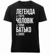 Мужская премиум-футболка собственного производства. Выполнена из качественной ткани (95% хлопок, 5% эластан) — плотная, мягкая и приятная к телу. Принт Легенда Чоловік Батько можно нанести на грудь, спину или рукав.