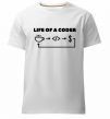 Мужская премиум-футболка собственного производства. Выполнена из качественной ткани (95% хлопок, 5% эластан) — плотная, мягкая и приятная к телу. Принт Life of a coder можно нанести на грудь, спину или рукав.