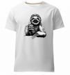 Мужская премиум-футболка собственного производства. Выполнена из качественной ткани (95% хлопок, 5% эластан) — плотная, мягкая и приятная к телу. Принт Лінивець з кавою можно нанести на грудь, спину или рукав.