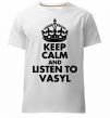 Мужская премиум-футболка собственного производства. Выполнена из качественной ткани (95% хлопок, 5% эластан) — плотная, мягкая и приятная к телу. Принт Listen to Vasyl можно нанести на грудь, спину или рукав.