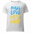 Мужская премиум-футболка собственного производства. Выполнена из качественной ткани (95% хлопок, 5% эластан) — плотная, мягкая и приятная к телу. Принт Make love not war text можно нанести на грудь, спину или рукав.