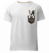 Мужская премиум-футболка собственного производства. Выполнена из качественной ткани (95% хлопок, 5% эластан) — плотная, мягкая и приятная к телу. Принт Мопс в кишені можно нанести на грудь, спину или рукав.