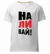 Мужская премиум-футболка собственного производства. Выполнена из качественной ткани (95% хлопок, 5% эластан) — плотная, мягкая и приятная к телу. Принт НАЛИВАЙ! можно нанести на грудь, спину или рукав.