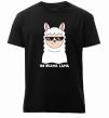 Мужская премиум-футболка собственного производства. Выполнена из качественной ткани (95% хлопок, 5% эластан) — плотная, мягкая и приятная к телу. Принт No drama lama можно нанести на грудь, спину или рукав.