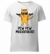 Мужская премиум-футболка собственного производства. Выполнена из качественной ткани (95% хлопок, 5% эластан) — плотная, мягкая и приятная к телу. Принт Pew Pew Cat можно нанести на грудь, спину или рукав.