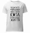 Мужская премиум-футболка собственного производства. Выполнена из качественной ткани (95% хлопок, 5% эластан) — плотная, мягкая и приятная к телу. Принт Працюю для кота можно нанести на грудь, спину или рукав.