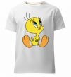 Мужская премиум-футболка собственного производства. Выполнена из качественной ткани (95% хлопок, 5% эластан) — плотная, мягкая и приятная к телу. Принт Пташка Твіті можно нанести на грудь, спину или рукав.