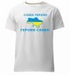 Мужская премиум-футболка собственного производства. Выполнена из качественной ткани (95% хлопок, 5% эластан) — плотная, мягкая и приятная к телу. Принт Слава Україні! Героям слава! можно нанести на грудь, спину или рукав.