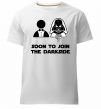 Мужская премиум-футболка собственного производства. Выполнена из качественной ткани (95% хлопок, 5% эластан) — плотная, мягкая и приятная к телу. Принт Soon to join the darkside можно нанести на грудь, спину или рукав.