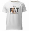 Мужская премиум-футболка собственного производства. Выполнена из качественной ткани (95% хлопок, 5% эластан) — плотная, мягкая и приятная к телу. Принт Stay fat lazy and happy можно нанести на грудь, спину или рукав.