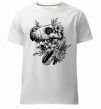 Мужская премиум-футболка собственного производства. Выполнена из качественной ткани (95% хлопок, 5% эластан) — плотная, мягкая и приятная к телу. Принт T-Rex skull in flowers можно нанести на грудь, спину или рукав.