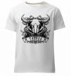 Мужская премиум-футболка собственного производства. Выполнена из качественной ткани (95% хлопок, 5% эластан) — плотная, мягкая и приятная к телу. Принт Телець череп можно нанести на грудь, спину или рукав.