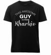 Мужская премиум-футболка собственного производства. Выполнена из качественной ткани (95% хлопок, 5% эластан) — плотная, мягкая и приятная к телу. Принт This awesome guy is from Kharkiv можно нанести на грудь, спину или рукав.
