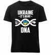 Мужская премиум-футболка собственного производства. Выполнена из качественной ткани (95% хлопок, 5% эластан) — плотная, мягкая и приятная к телу. Принт Ukraine it's my DNA можно нанести на грудь, спину или рукав.