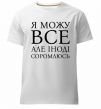 Мужская премиум-футболка собственного производства. Выполнена из качественной ткани (95% хлопок, 5% эластан) — плотная, мягкая и приятная к телу. Принт Я можу все, але іноді соромлюсь можно нанести на грудь, спину или рукав.