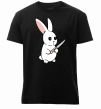 Мужская премиум-футболка собственного производства. Выполнена из качественной ткани (95% хлопок, 5% эластан) — плотная, мягкая и приятная к телу. Принт Зайчик з ножем можно нанести на грудь, спину или рукав.