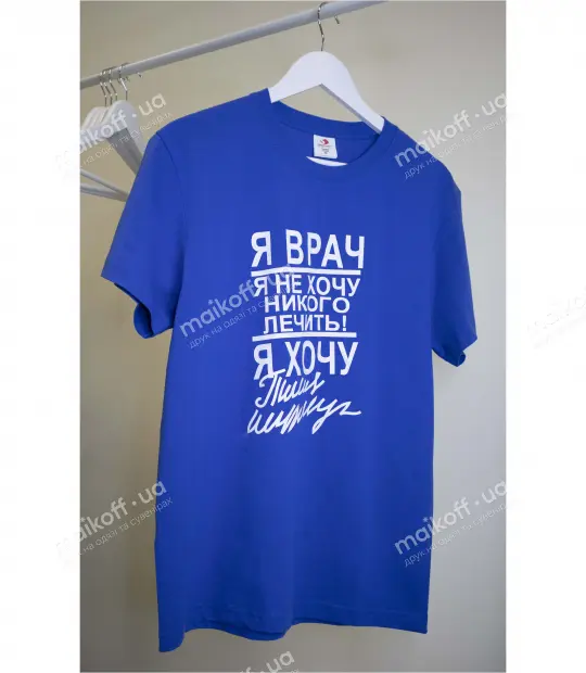 Футболка прямого кроя без боковых швов. Ткань 100% хлопок - мягкая и приятная на ощупь. После стирки, при правильном уходе, футболка не растягивается, не садится и не линяет. Нанести принт Я лікар на футболку можно на грудь, на спину, на рукав. Цвет принта можно заказать любой!