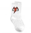 Носки AC/DC блискавка з рогами из качественного хлопка: хорошо пропускают воздух, впитывают влагу и сохраняют ноги сухими. Укреплённые мысок и пятка повышают износостойкость. Эластичная резинка фиксирует, не пережимая.