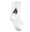 Носки Доберман портрет из качественного хлопка: хорошо пропускают воздух, впитывают влагу и сохраняют ноги сухими. Укреплённые мысок и пятка повышают износостойкость. Эластичная резинка фиксирует, не пережимая.