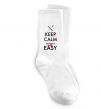 Носки Keep calm design is not easy из качественного хлопка: хорошо пропускают воздух, впитывают влагу и сохраняют ноги сухими. Укреплённые мысок и пятка повышают износостойкость. Эластичная резинка фиксирует, не пережимая.