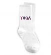 Носки Yoga text из качественного хлопка: хорошо пропускают воздух, впитывают влагу и сохраняют ноги сухими. Укреплённые мысок и пятка повышают износостойкость. Эластичная резинка фиксирует, не пережимая.