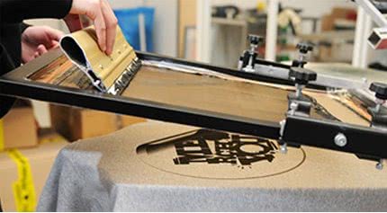 Рисунок наносится на текстиль или другой материал через особые трафареты. Данный метод является наиболее экономичным для больших тиражей от 100 шт.
