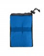 Полотенце из замшевой микрофибры. Оно хорошо впитывает влагу, быстро сохнет и не занимает много места в сумке. Имеет эластичную ленту для фиксации полотенца в скрученном виде или для подвешивания на крючок.