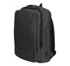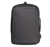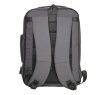 Рюкзак имеет два больших отделения с органайзером для ноутбука и аксессуаров, а также внешний карман с вертикальной молнией. По периметру задней стенки есть расширительная молния, которая позволяет увеличить объем. На спинке — ремень для крепления к чемодану.