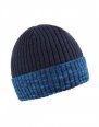 Вязаная двухслойная шапка с рельефными рядами имеет достаточно широкий отворот, выполненный в контрастной меланжевой гамме.