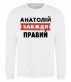 Свитшот модели унисекс - прямой крой, свободный (не оверсайз) фасон; внутри флисовое утепление. Состав: 80% хлопок 20% синтетика. Нанести принт Анатолій завжди правий на свитшот можно на грудь, на спину, на рукав. Цвет принта можно заказать любой!
