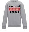 Детский свитшот - прямой крой, внутри флисовое утепление. Состав: 80% хлопок, 20% синтетика. Нанести принт Анатолій завжди правий на детский свитшот можно на грудь, на спину, на рукав. Цвет принта можно заказать любой!