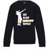 Детский свитшот - прямой крой, внутри флисовое утепление. Состав: 80% хлопок, 20% синтетика. Нанести принт Eat sleep fortnite repeat на детский свитшот можно на грудь, на спину, на рукав. Цвет принта можно заказать любой!