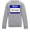 Детский свитшот - прямой крой, внутри флисовое утепление. Состав: 80% хлопок, 20% синтетика. Нанести принт Hello my name is Artem на детский свитшот можно на грудь, на спину, на рукав. Цвет принта можно заказать любой!