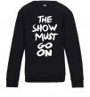 Детский свитшот - прямой крой, внутри флисовое утепление. Состав: 80% хлопок, 20% синтетика. Нанести принт The show must go on на детский свитшот можно на грудь, на спину, на рукав. Цвет принта можно заказать любой!
