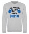Свитшот модели унисекс - прямой крой, свободный (не оверсайз) фасон; внутри флисовое утепление. Состав: 80% хлопок 20% синтетика. Нанести принт This awesome guy is from Dnipro на свитшот можно на грудь, на спину, на рукав. Цвет принта можно заказать любой!