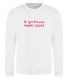 Свитшот модели унисекс - прямой крой, свободный (не оверсайз) фасон; внутри флисовое утепление. Состав: 80% хлопок 20% синтетика. Нанести принт Я тут тільки через гроші на свитшот можно на грудь, на спину, на рукав. Цвет принта можно заказать любой!